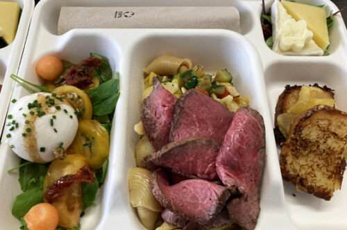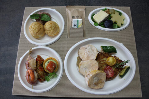 Tous nos plateaux repas sont servis avec des couverts jetables et du pain artisanal.